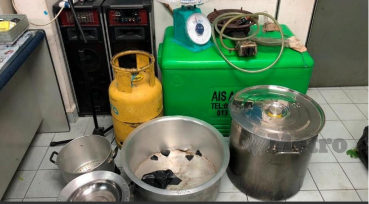 Beliau berkata, pihaknya merampas perkakasan dan alat untuk memproses dan membungkus air ketum iaitu alat penimbang, periuk, dapur serta tong gas.