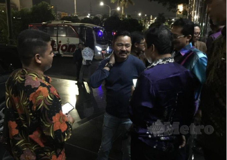 ROMBONGAN media dari Malaysia keluar dari bangunan selepas selesai sesi temuduga bersama Duta Besar Indonesia ke Malaysia, Rusdi Kirana (dua dari kanan). -FOTO Tuan Mohd Asri Tuan Hussein