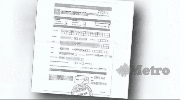 Katanya, ibu pejabat parti menerima borang daripada individu tidak dikenali pada 4 petang hari ini dan ia diterima kakitangan bertugas.