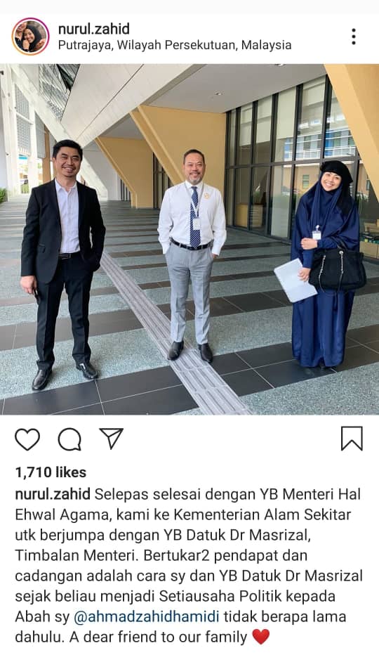 Pada 20 April lalu, beliau memuat naik gambar pertemuan mereka dengan Menteri di Jabatan Perdana Menteri Dr Zulkifli Mohamad dan Timbalan Menteri Alam Sekitar Masrizal Muhammad di Instagram, yang mengundang kriitikan kerana didakwa melanggar PKP.