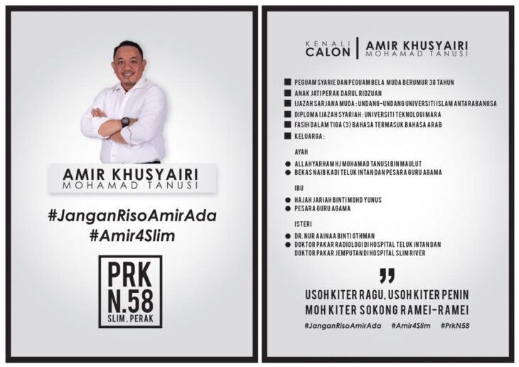 Prominant lawyer, Amir Khusrairi Mohamad Tanusi has been named newly formed party, Pejuang’s candidate for the Slim election schedulled on 29 August.